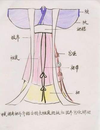上襦下裙的特点就是上衣相对简单,下身相对繁琐,腰身部分则紧身合体,而袖筒比较肥大。