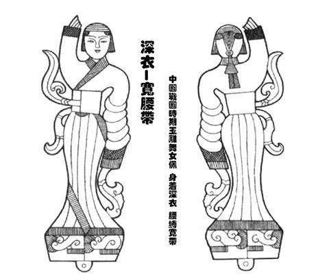 而到了春秋战国时期,又流行了一种新的服饰,这就是衣裳连属,古人将上下裳合成一体,取名为“深衣"。