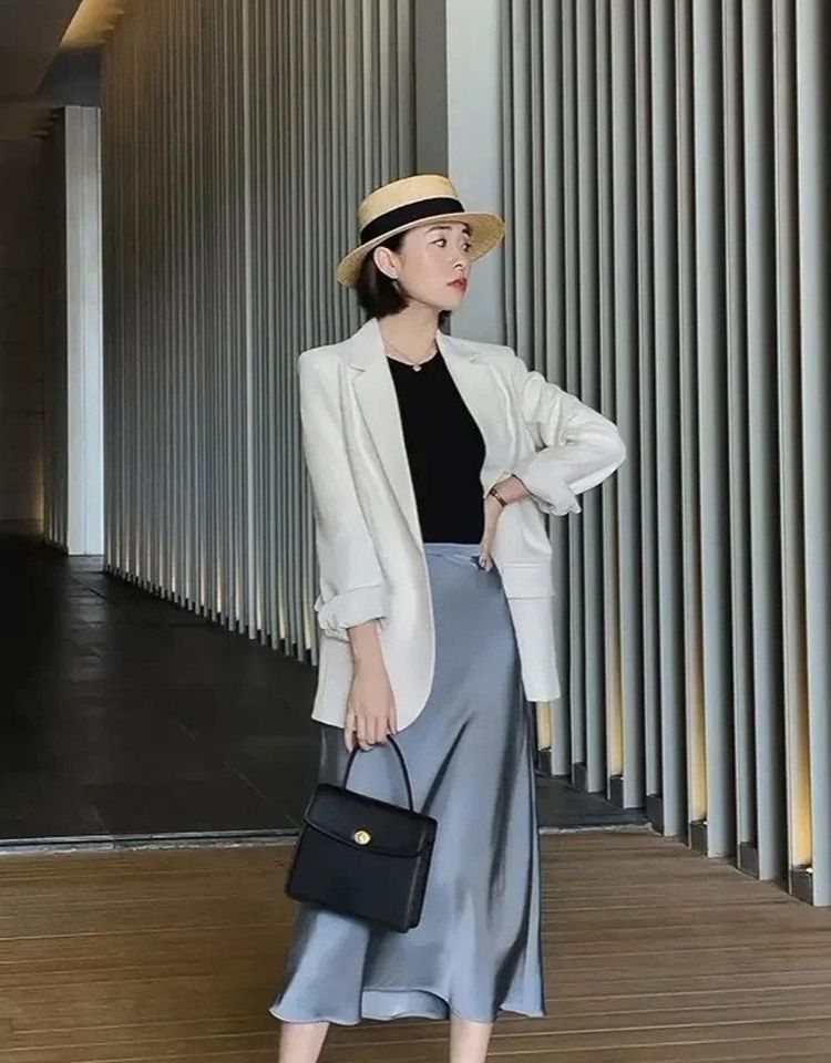 建议中年女人,裙子尽量选择纯色系款式,黑白灰保守,莫兰迪色提亮肤色又显得年轻,还不会给人强行扮嫩的感觉。