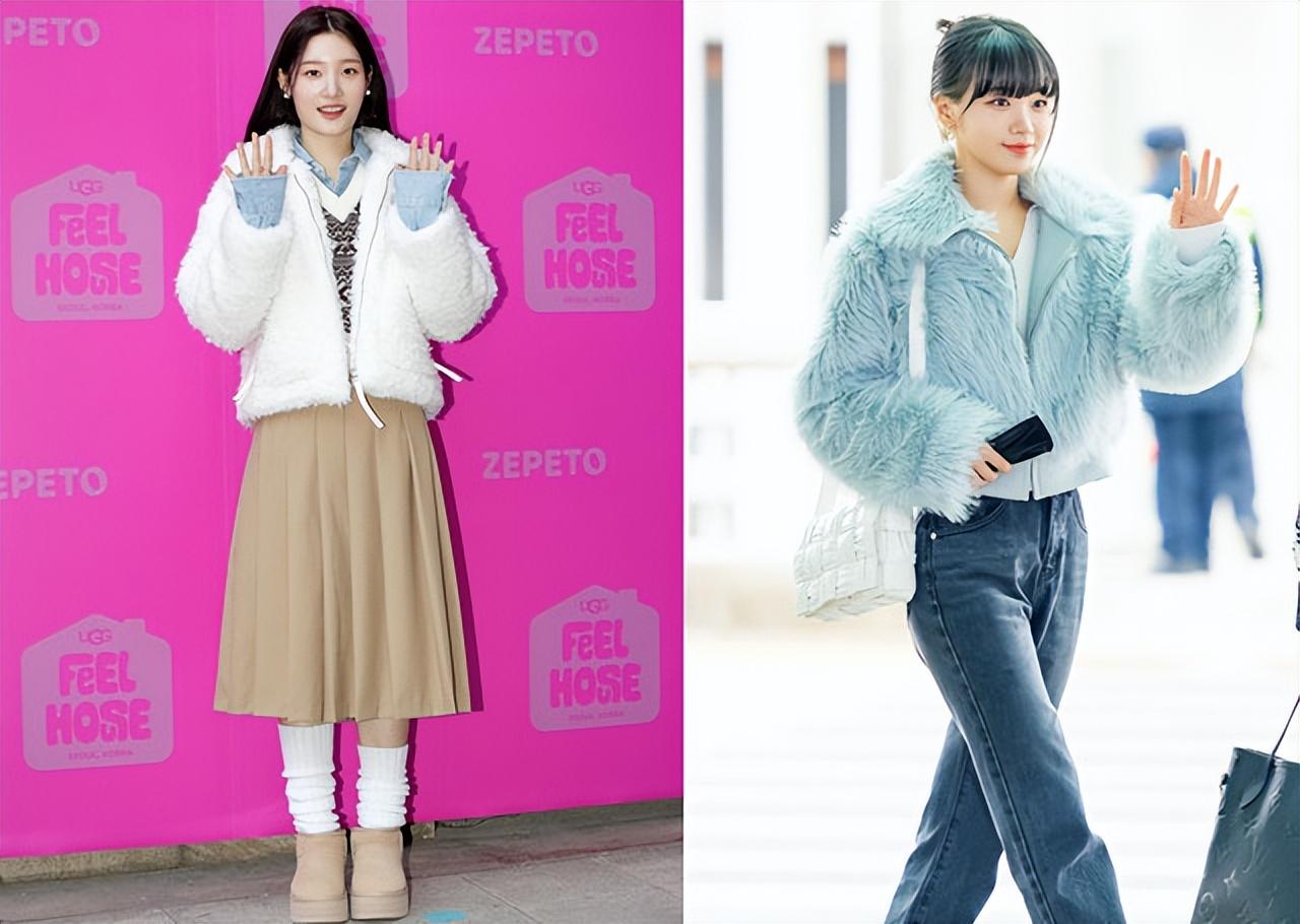 左图:郑彩英,电视剧《因为初恋是第一次》中的彩瑛,以皮毛为主角,展现了迷人的层次感,提升清新魅力的宽松袜子,作为防寒单品也备受瞩目。