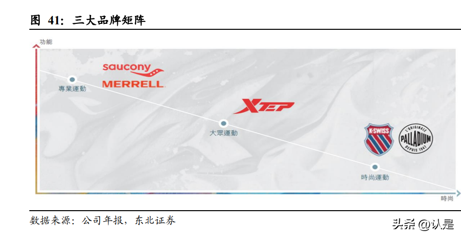 经历 35 年的品牌升级,成为了国内的跑鞋专家。特步国际于 2001 年创建,定 位大众的专业体育用品企业,坚持“运动时尚”的独特定位,构建大众运动(特 步主品牌)、专业运动(索康尼、迈乐)和时尚运动(盖世威、帕拉丁)三大品 牌矩阵,从 OEM 成长为国内专注大众和专业跑步领域龙头。 FY2005-FY2021 年公司营收复合增速高达 24.6%。2021 年营收初破百亿,同增 22.53%;实现归母净利润 9.08 亿人民币,同增 77.05%。2022 年因市场定位差 异,公司受疫情影响更小,三年改革完成后,业绩已经开启上升通道。 品牌端:公司构建三大品牌矩阵,实现行业全覆盖。特步主品牌一直定位高性 价比的大众时尚运动,近年来公司致力于在保持自身运动基因不变的同时,不 断与时尚元素和潮流因子相联合,打造“专业运动+时尚潮流”之路。公司于 2019 年 2.6 亿收购两大国外时尚运动品牌盖世威、帕拉丁,同时与专业运动品牌索 康尼,迈乐成立合资公司,获得在中国大陆的经营权,收购完成后,目前形成 了大众时尚、时尚运动以及专业运动三类品牌共同发展的格局,形成了在运动 领域的覆盖,有满足不同消费群体的需求。