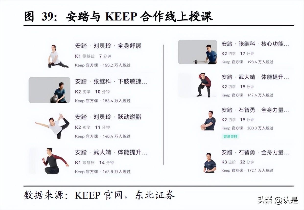 2)积极与社交平台、电商平台展开合作:Lululemon 在 YouTube、Facebook、小红 书、微博等国内外知名社交平台上都拥有粉丝社群,在分享瑜伽运动的同时分享 Lululemon 的用户体验感,形成线上瑜伽兴趣交流群体(截至 2022 年 08 月 Lululemon 小红书粉丝数达到 7.4w,微博达到 5.3w)。 同时开发品牌官网、天猫等渠道进行销售,多维捕捉消费者。电商平台红利期的到来,推动了线上营销加速的步伐,电商平台通过大数据库敏锐捕捉用户消费特征和 兴趣爱好,实现点对点的化产品推荐,扩大品牌认知度。 借助健身平台,锁定健身人群。公司与健身平台展开合作,通过线上瑜伽授课的方 式增强用户黏性,公司于 2020 年对家庭健身公司 Mirror 的收购深化了这一营销方 式。Lululemon 与 Keep 合作开设线上品牌空间站,成为 Keep 运动服饰品牌的 K-Partner,联合打造 6 节线上瑜伽定制课程,让用户随时参与品牌线上健身活动, 传播“以健活方式为灵感”的品牌理念。