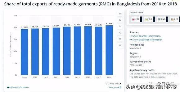 2018年,孟加拉的出口总额为405亿美元,其中高达341亿美元来自成品服装出口,占出口总额的约84%。整个服装制造业贡献了孟加拉GDP的16%。