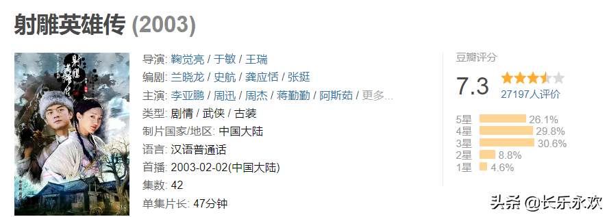 所以,2003版的《射雕英雄传》也只有7.3分,一下子掉了好几个档次一样。