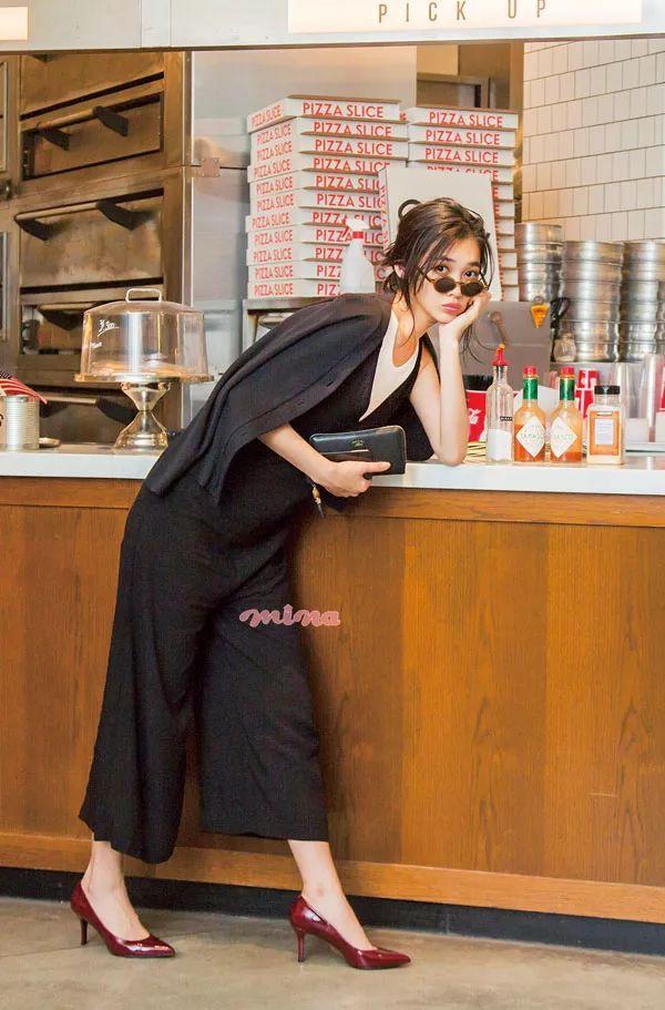 修身黑色单品打造干练女人味造型。搭配清爽的扎发会更好。