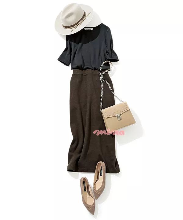 勾勒好身材的罗纹针织衫是必备单品,棕色款令季节感up。开叉设计的紧身裙女人味满满。