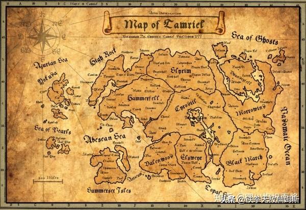 上古卷轴的故事发生在一个叫 “泰姆瑞尔(Tamriel)” 的大陆(如下图),