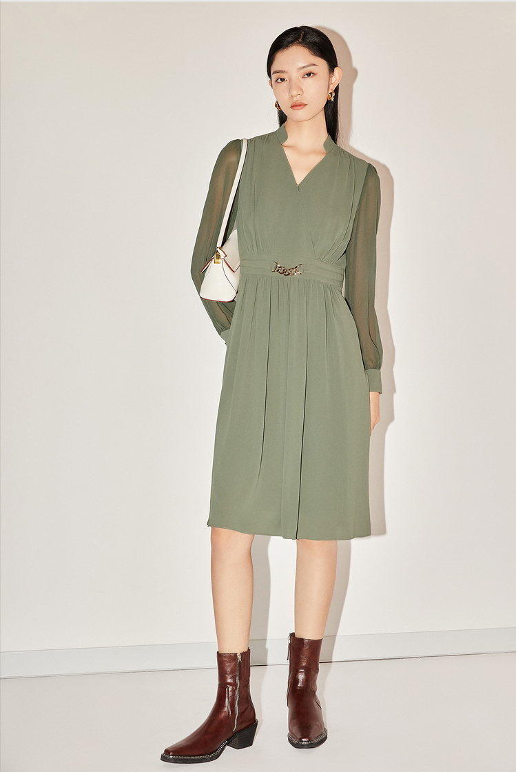 红袖算是中档定位的品牌,产品风格也是"知性、简约、优雅",看它家的连衣裙基本上在300出头,款式比香影、三彩更具通勤感,少一点甜美,多一点知性。