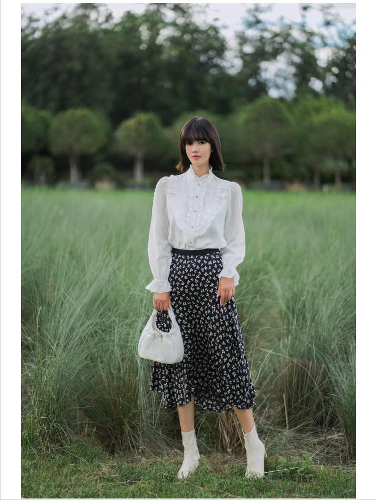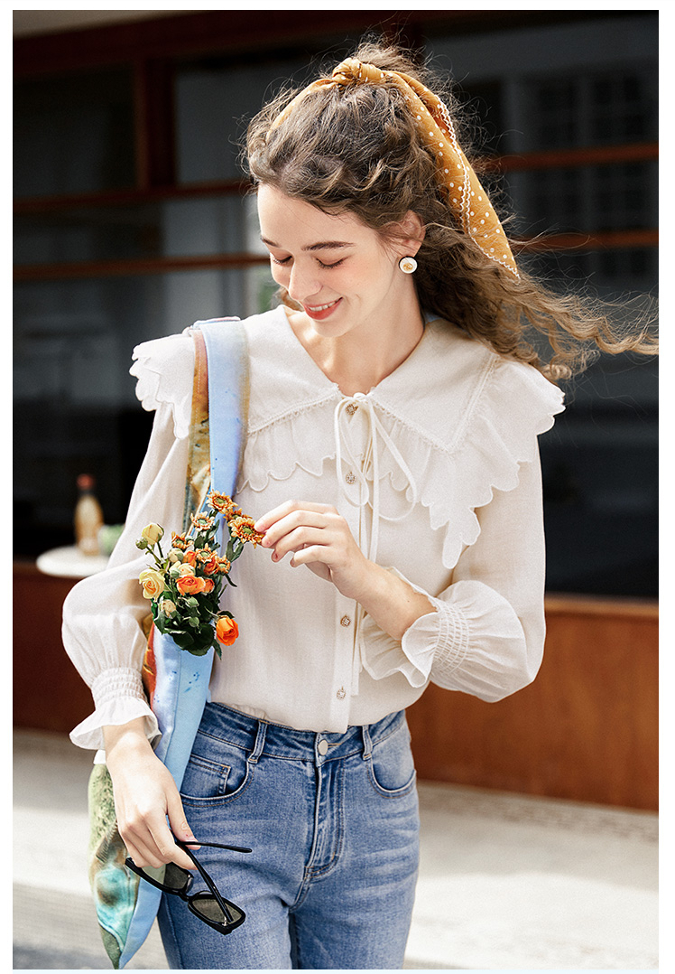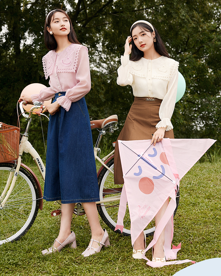 香影的服装都是自己生产销售,产品风格和三彩有点类似,有浪漫淑女风格,比如蕾丝、碎花、花边刺绣等元素用得比较多,像一些连衣裙、衬衫都是不错的选择。