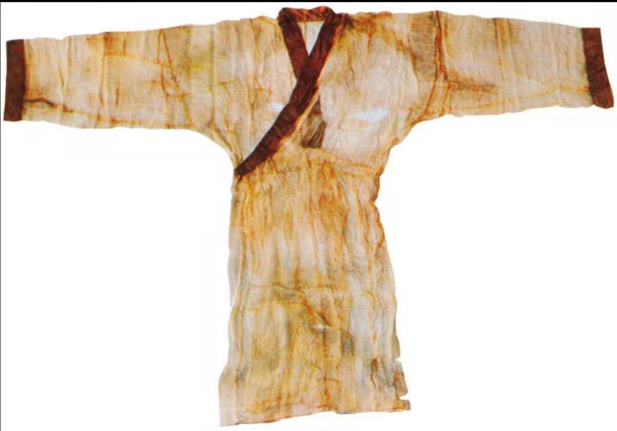 值得一提的是,在墓中出土了一件素纱蝉衣,整件衣服薄如蝉翼,连袖子全长190厘米,却只有48克重,还不到一两,可谓是稀世珍品。