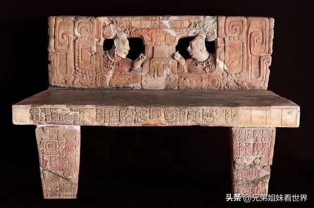 玛雅宝座,上面有两位领主的雕像,来自危地马拉的彼德拉斯内格拉斯。目前借给纽约大都会艺术博物馆。