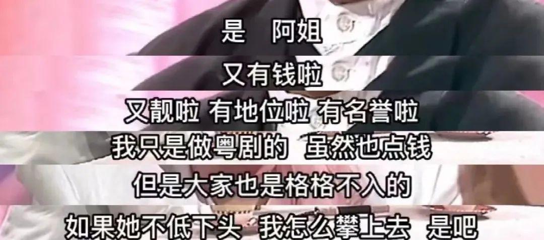 此时42岁的阿姐身份地位金钱都有了,而罗家英做了半辈子粤剧,出名的影视作品也只有电影《大话西游》里那个唠叨的唐僧。