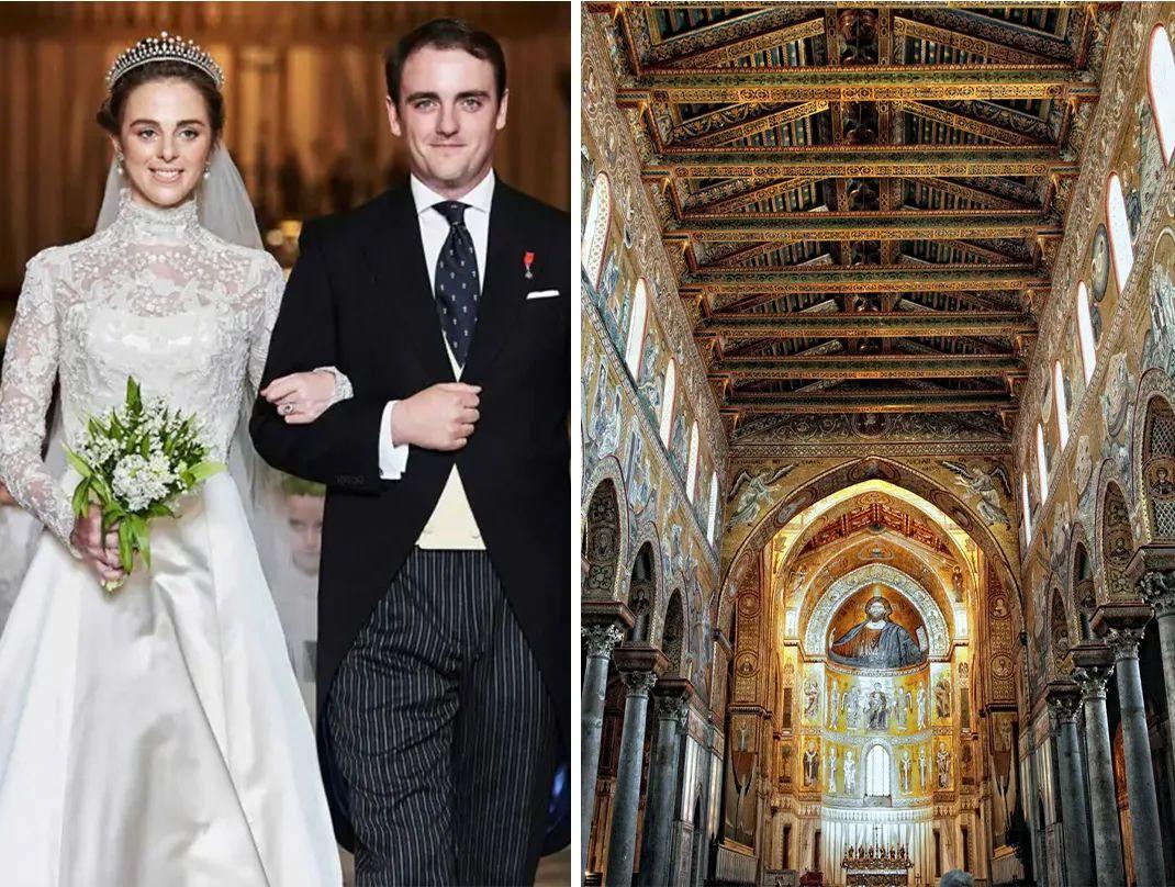 首先来看看王室婚礼的选址,因为礼俗缘故,大多数和王室沾边的婚礼一般都会选在教堂举办。比如波旁-两西西里王室海梅王子的婚礼,就是在蒙雷阿莱主教座堂举行,内部气势宏伟,以堂内丰富的拜占庭马赛克装饰而闻名。