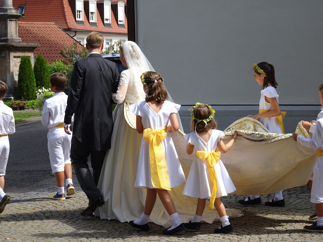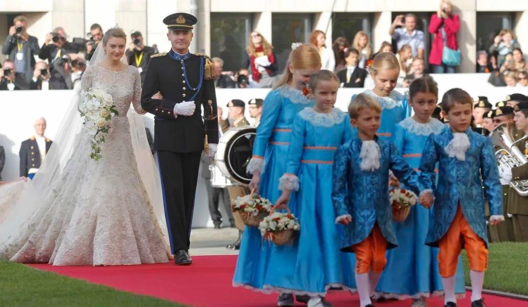 也有一些会让花童们穿传统服饰。之前卢森堡大公储纪尧姆婚礼上,几名小花童就穿的蓝色+橘色的传统服饰,意在给致敬,相当亮眼了。