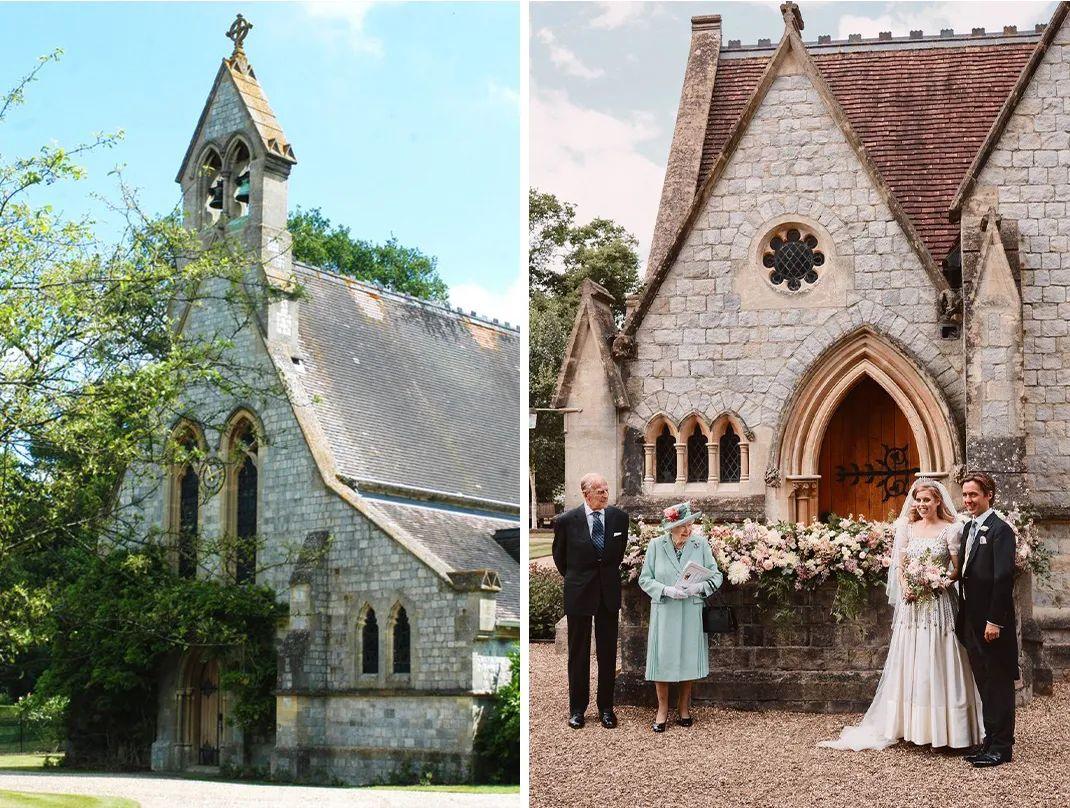 还有去年英国碧翠丝公主的婚礼,因为遇到父亲的丑闻和疫情来袭,为了起见,也从原定的圣詹姆斯宫改到了温莎诸圣皇家礼拜堂,只邀请了20人,算是走的小而精致的风格~