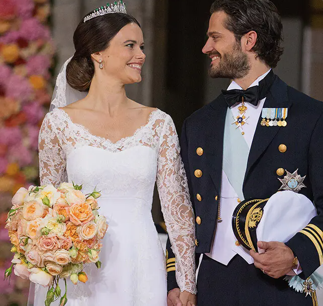 瑞典索菲亚王妃和瑞典王子卡尔菲利普的婚礼上,手捧花则是一束深浅不一的珊瑚色玫瑰,亮眼点睛且十分唯美。