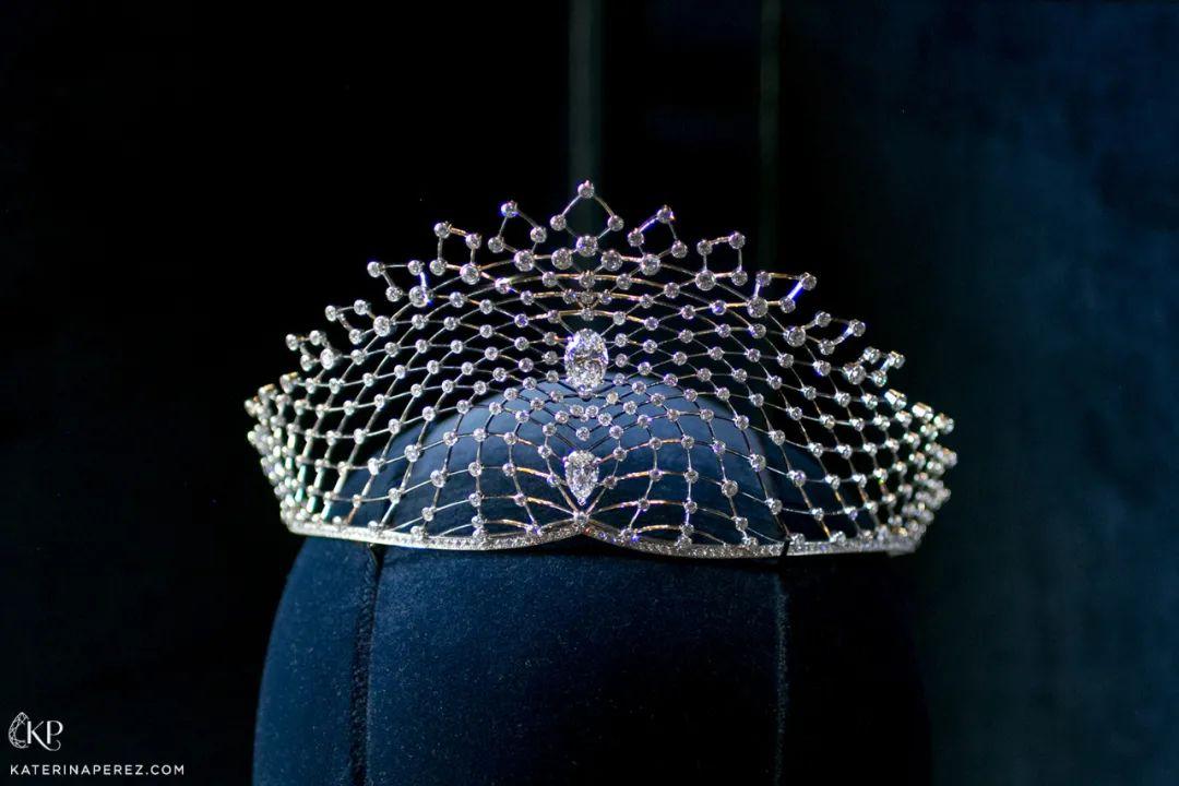 这顶冠冕是奥地利王室珠宝商Köchert在1890年打造的,早拥有它的人是早年奥地利大公的妻子玛丽亚·特蕾莎,后来传到了列支敦士登王室,成了世袭相传的宝物。