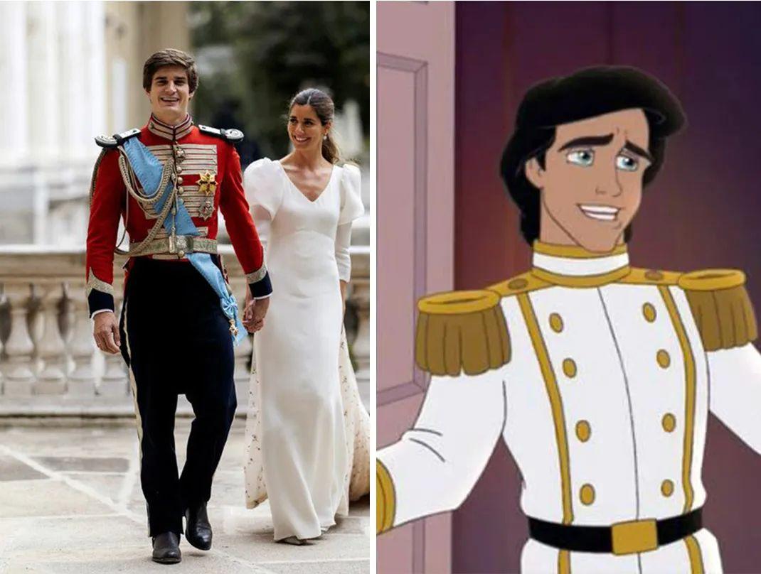 有穿传统服装的,阿尔巴公爵继承人卡洛斯穿了一身代表塞维利亚皇家骑兵军械库的军服,十分有贵族范儿,很多人说像《小美人鱼》中的埃里克王子。