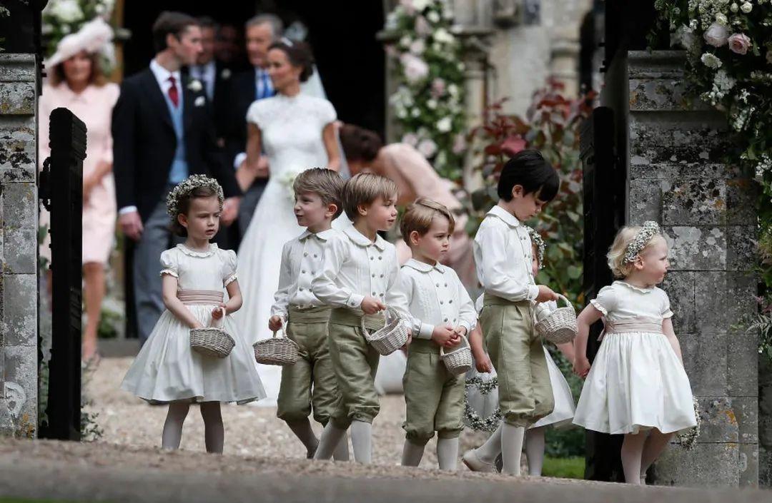 当年凯特妹妹Pippa结婚的时候,花童们穿的也是极具英伦复古风格的服装,提着小篮子,画风特别可爱~