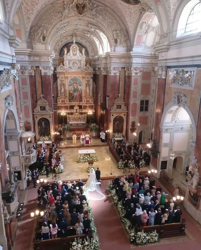 这是一座天主教教堂,整体呈巴洛克式的装修风格,有人俯拍了婚礼现场,很有仪式感。除了Maria公主的婚礼之外,音乐家海顿的追悼会也是在这里举行的。