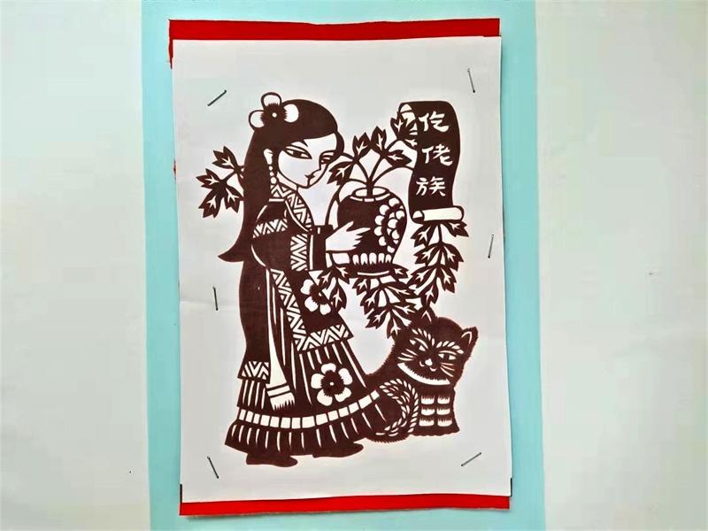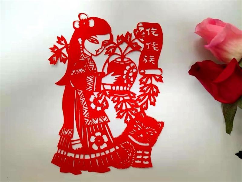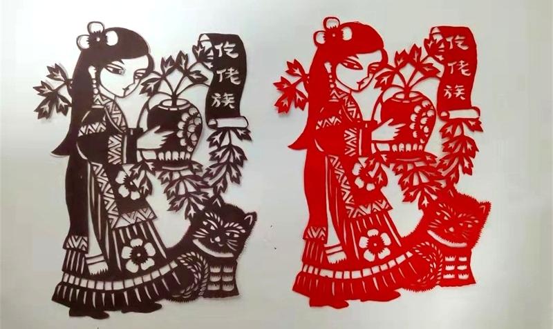 5、后,沿着线条的外轮廓全部剪下来,仡佬族的剪纸作品全部完成。手捧花瓶的美丽少女展现眼前,都说花儿美,人比花更胜三分。