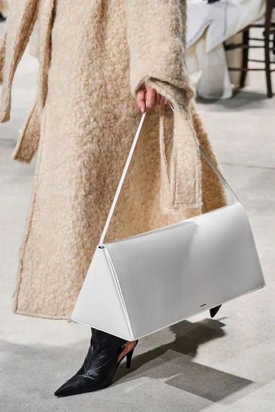 超大型的几何包,或者夸张的袋子包,能够让穿着者看起来的放松和潇洒。