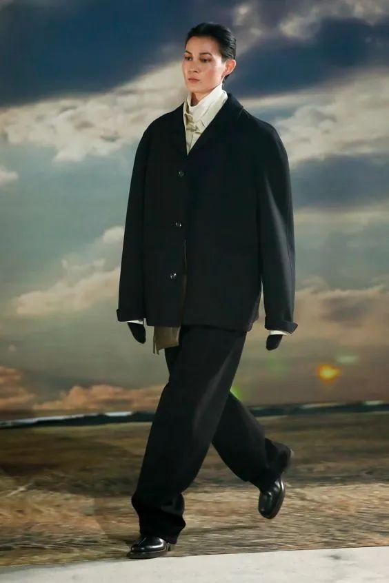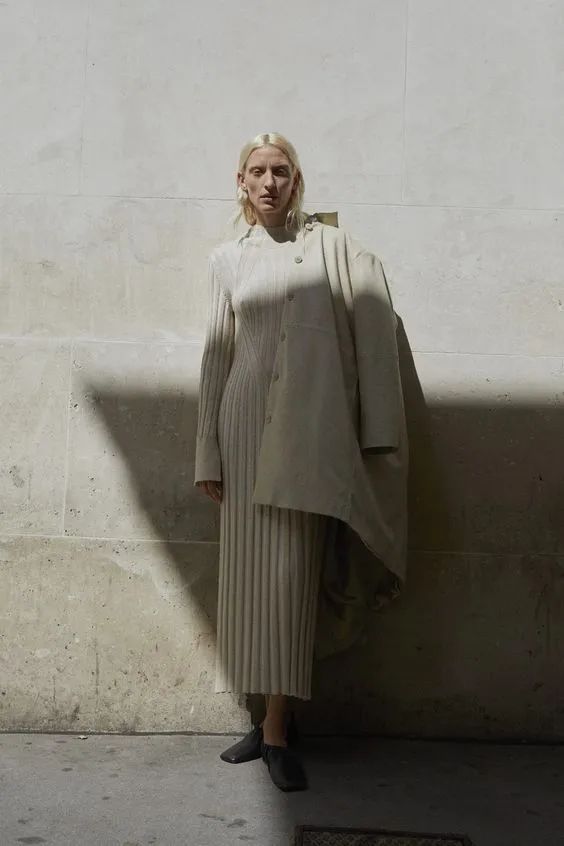 曾经让我们骄傲和摩登的各种配饰和金属细节装饰,在这种风格中被摒弃了。人们更愿意从廓形和面料上下功夫。比如one piece式长外套,结构性上衣,以及多层次混搭,都有助于营造这种时髦。