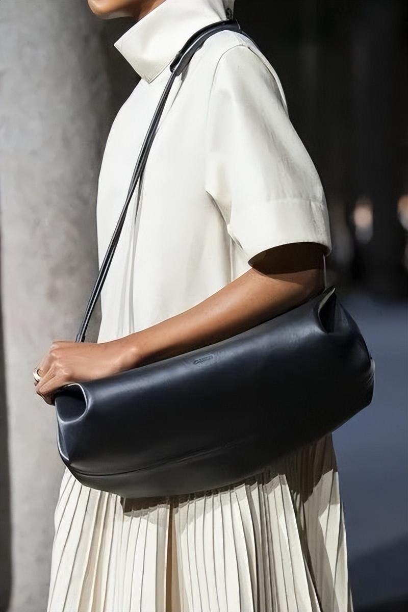 我们发现,规规矩矩的中文包,筒包,以及柔软的皮革大包,大而夸张的饺子包,都适合与这种风格的衣服进行搭配。