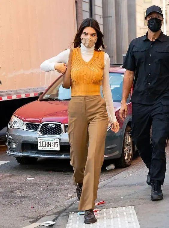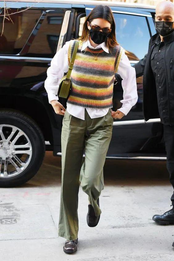 我们发现,Kendall的风格,抛弃了曾经的华丽感,并大量的穿着了卡其裤搭配衬衫,这种更文艺、更知性气质的组合。