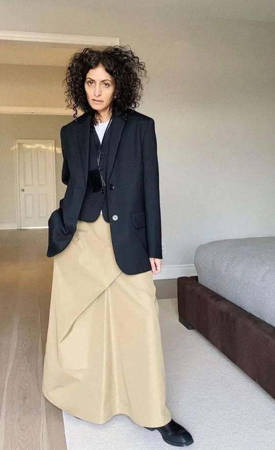 另外一双经典的黑皮鞋,一条90年代的复古牛仔裤,以及一些适合秋冬的围巾、马甲,雅致而有知性气质的卡其色调的单品,都能让你的通勤造型格外时髦。