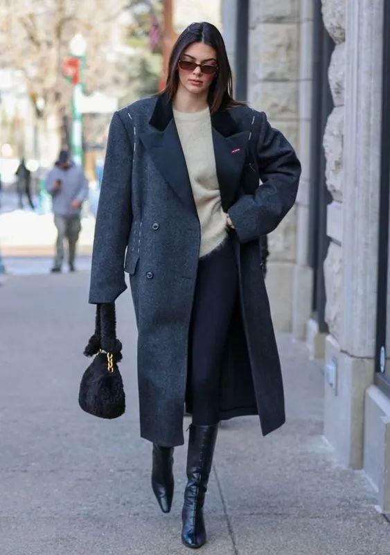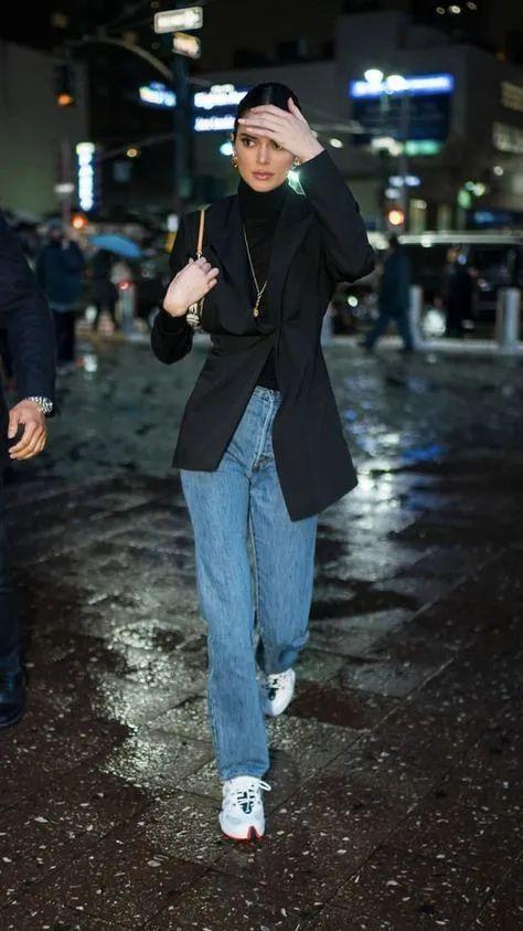 Kendall在一些访谈里面提过,她的造型师团队会从90年代的时尚ICON里面,寻找穿搭灵感。像这种高领衫搭配复古牛仔裤的组合,就是那个年代时髦的穿法之一。同样充满了知性气质。
