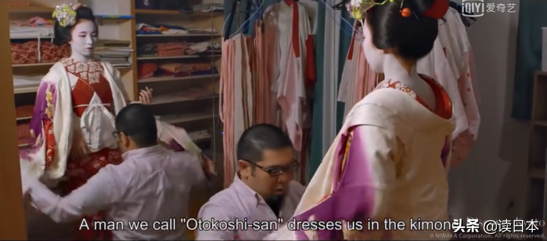 穿和服的时候,需要男人来帮忙。因为和服的腰带有六七米长,要把腰带提上来紧紧系好,这就需要男人的大力气才能做到。