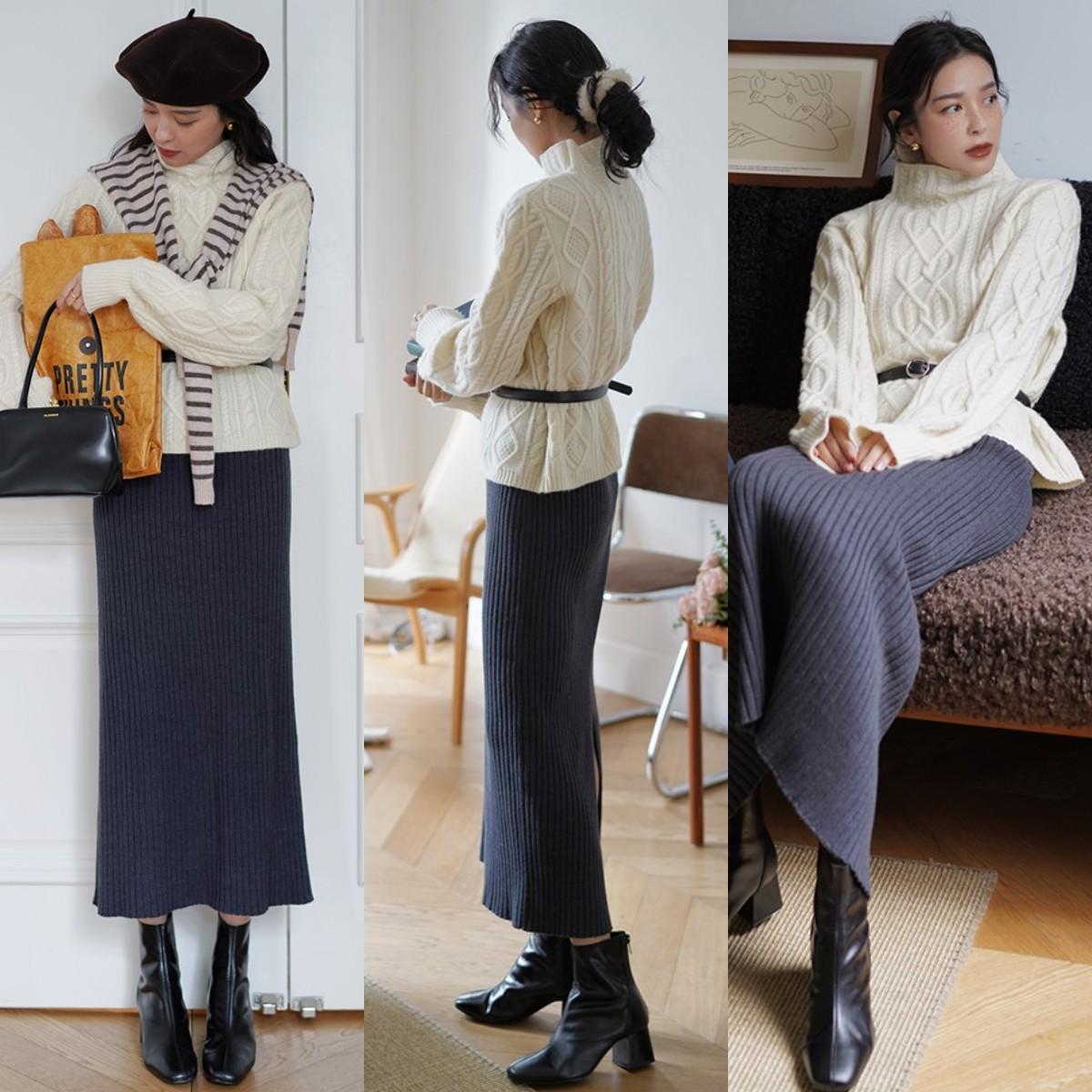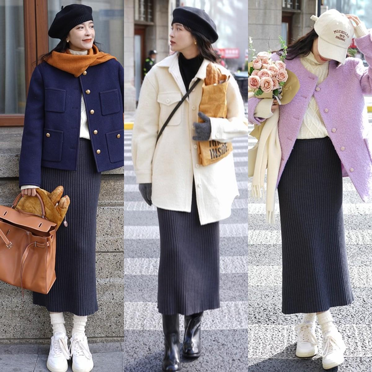 秋冬季节一定不能错过下图中针织材质的直筒半身裙,直筒版型的线条感和针织面料的温柔气质也可以形成的中和,整体看上去不会过于正式严肃,20+的姐妹们也不用担心会穿的过于呆板老气。