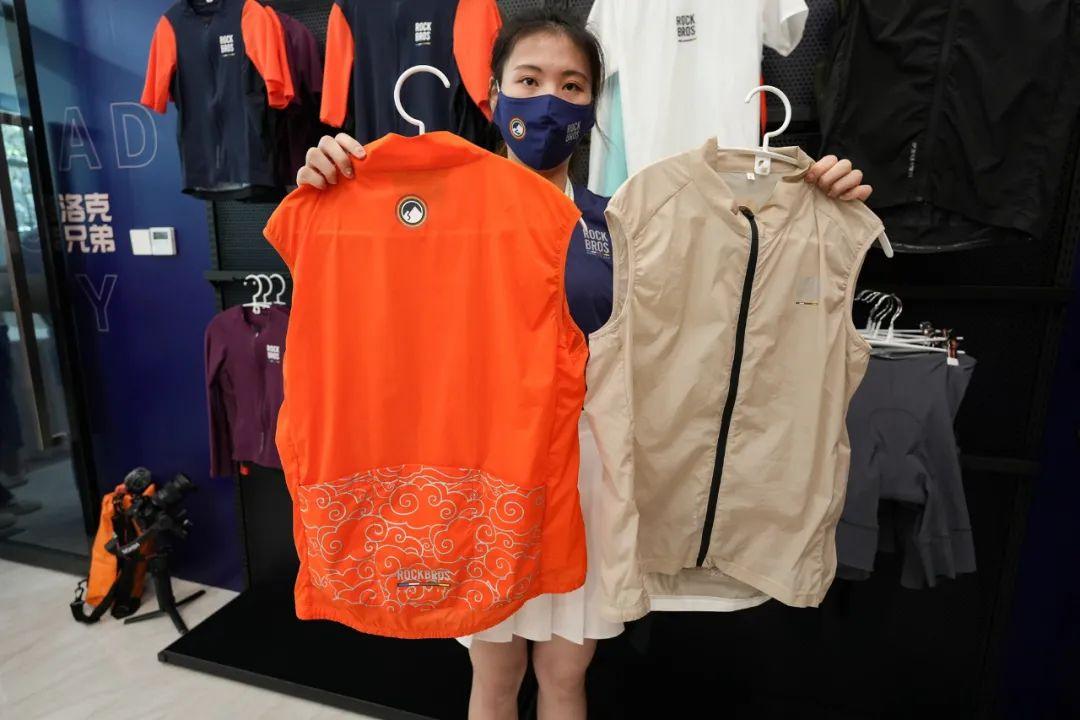 轻薄的骑行马甲,有防晒防雨的作用,同样带背袋。