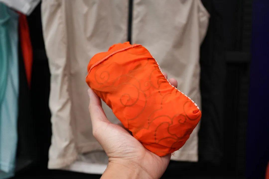 将马甲翻折到背袋里,小小的一个,很轻松就能放进口袋里。