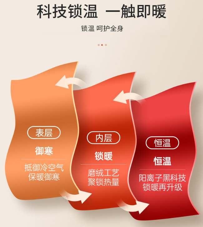 AB面双层压合,为你双重保暖,贴身穿在身上,360度蓄热锁温,为你驱赶寒冷。