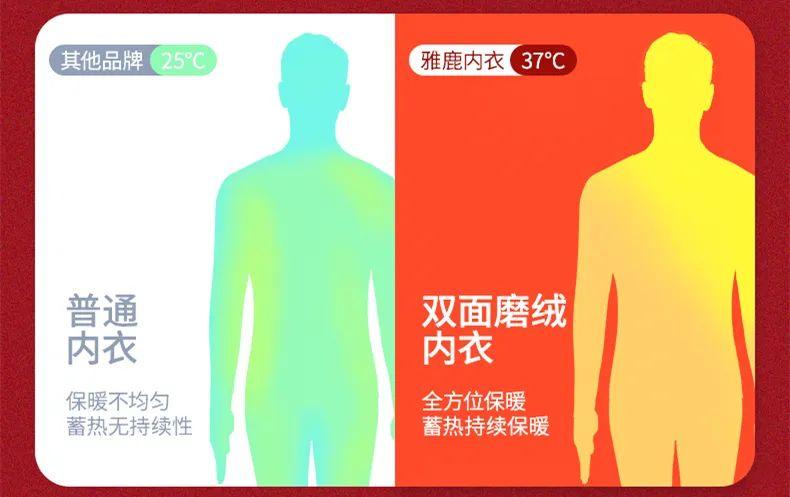 但这套雅鹿保暖内衣(右➡️),穿上以后温度可以高达42度,快速驱寒,并终保持在舒适的36.8度,长久锁温。