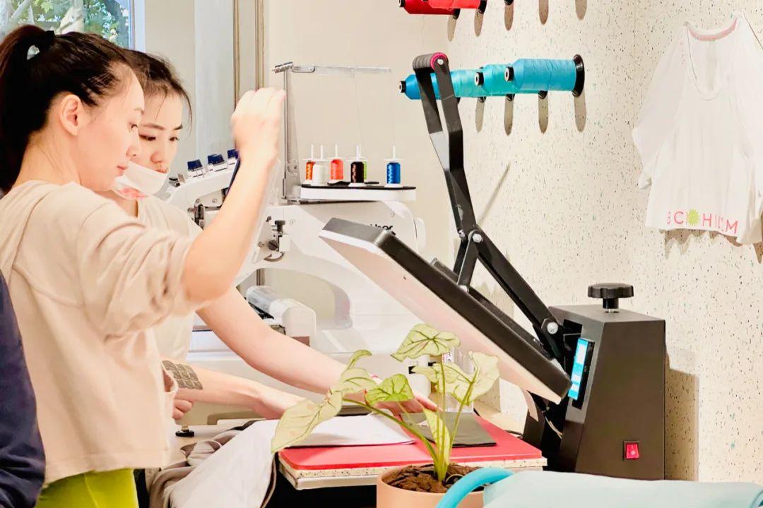 有了社群运营空间还不够,在2层还设置了一个DIY空间。擅长运用文案的MAIA ACTIVE除了在镜面上有展现外,其产品内里同样会印上各种能唤起女性共鸣的slogan,是品牌特色之一。如今在这家旗舰店中,消费者可以以积分兑换的形式,现场定制自己喜欢的文案(姓名、座右铭等等),将产品变得独特且悦己。