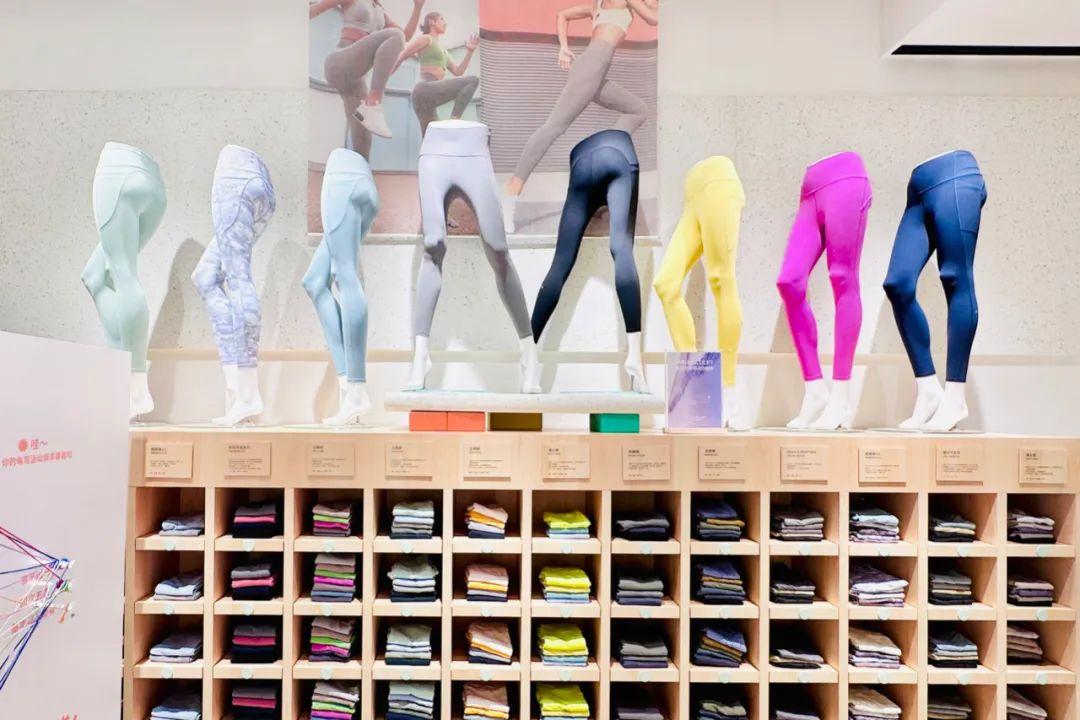左侧墙面则全部被各种裤装单品占据,其中当然少不了明星产品腰精裤以及采用新面料研发的新品。
