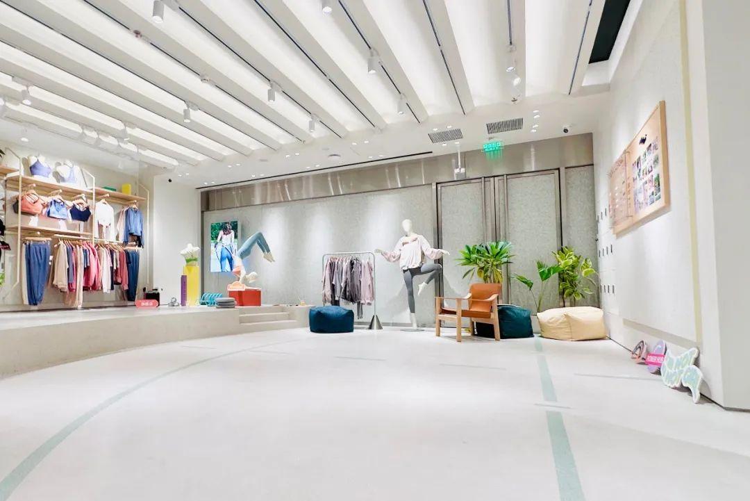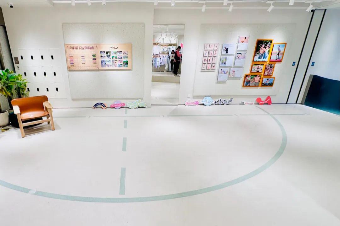 这是一个更偏功能性的社群空间,我在前往探班时正在举办一个室内瑜伽活动,等到活动结束后才拍下了空景照片(画面远处背景目前是封闭状态,待商场整体改造完毕后将会完全打开与内场2层连通,活动内容也会展现无疑)。对于MAIA ACTIVE这类主打细分市场的运动品牌而言,社群是增加消费者黏性的关键运营方式,在过往很长一段时间中,品牌更多是通过户外活动来进行呈现,例如跑步、露营、飞盘等现阶段的各种时髦玩法。