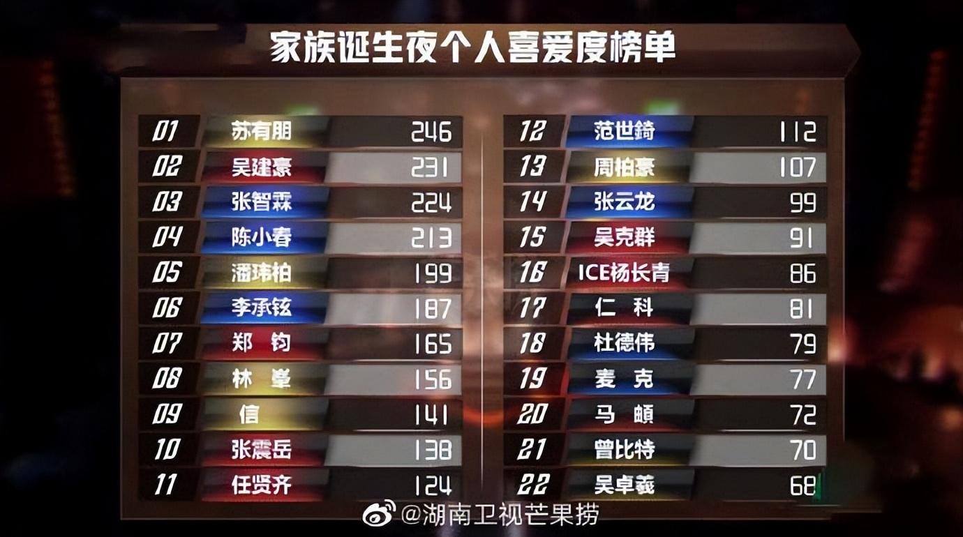 第二名为吴建豪,此前公演中他的名次都在较后的位置,这一次突然出现在第二名,也引发诸多猜测。