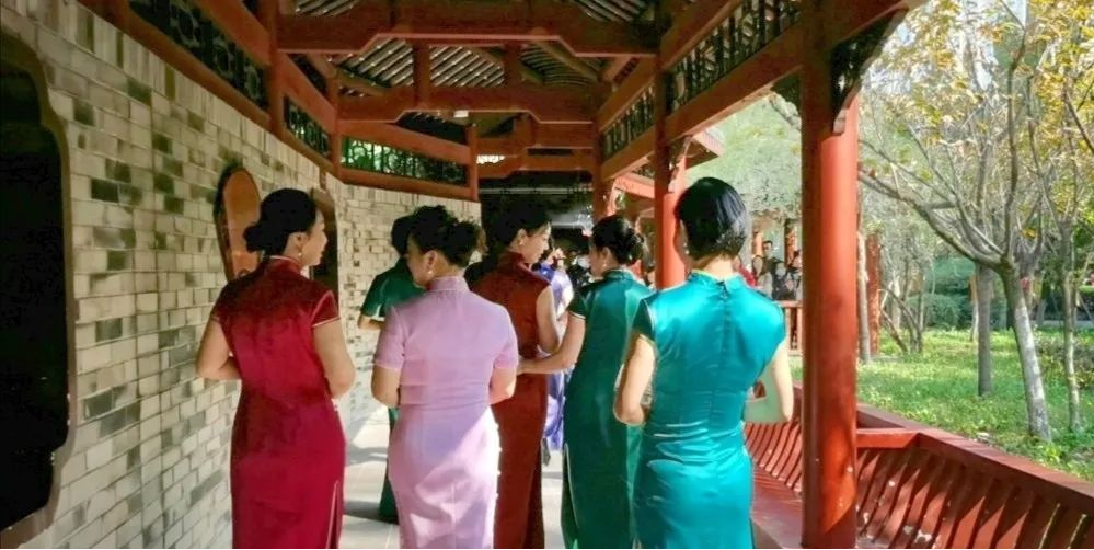 人民公园菊花展旗袍主题活动。图片来源:微信@西南商报记者赵蝶