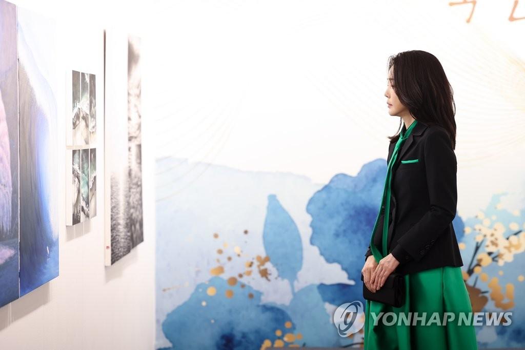 其实,金建希这天连着参加了两场活动,上午她和丈夫还在首尔瑞草区艺术殿堂举行的“2023文化艺术人新年问候会”,在这个活动上,她和丈夫一直在欣赏青年画家们的美术作品,他们当还时见了80名艺人。