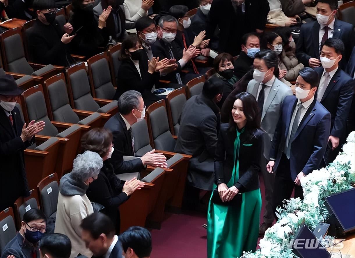 虽然没有佩戴任何首饰,金建希还是显得高贵典雅。人靠衣装,她穿上如此漂亮的衣服,果然是不同凡响。