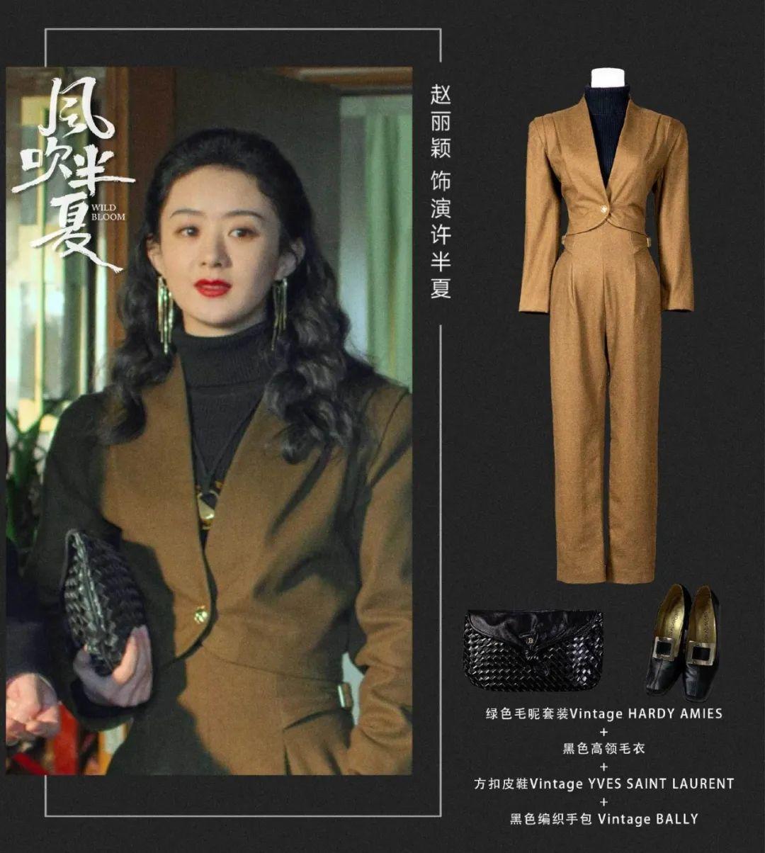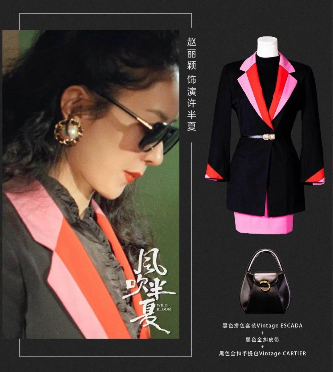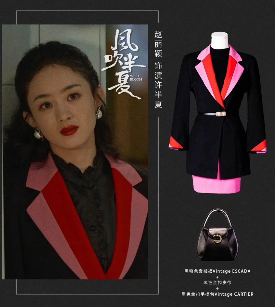 赵丽颖在电视剧里个体户早期造型都很张扬,几乎都是大色块西装,像是鲜艳的盔甲。