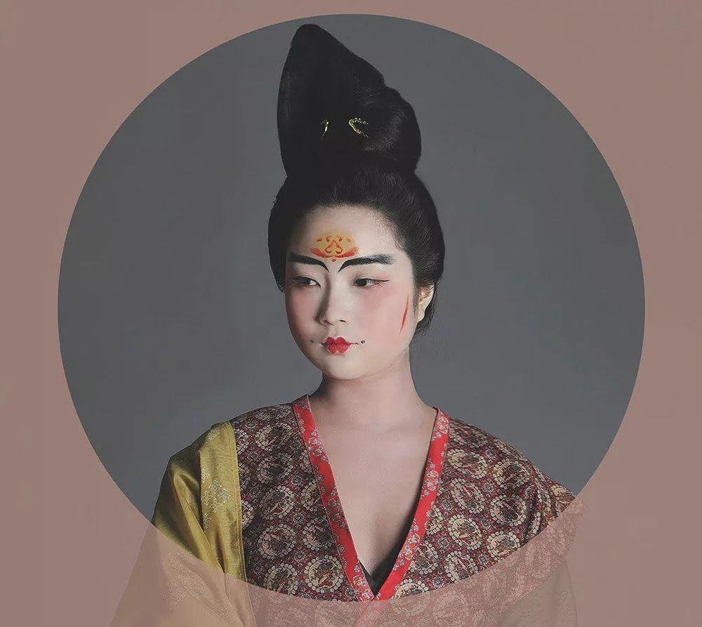 极尽奢华的发饰下却是一张似人非人,愁苦的脸,预示着唐朝的灭亡,唐朝女子的妆饰源于盛唐终于晚唐。