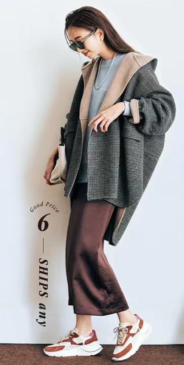 搭配棕色窄裙,利用廓形混搭营造和谐,简直绝配!