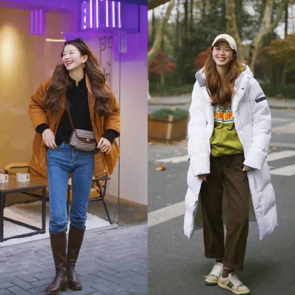 如果你觉得自己的双腿线条又细又长,不需要黑色来显瘦,那么就可以选择清爽的蓝色系牛仔裤,很是减龄。搭配棕色系轻薄款羽绒服,能够避免太过于臃肿显胖的问题,又穿出恰到好处的美感,还兼顾不错的保暖果,值得考虑。