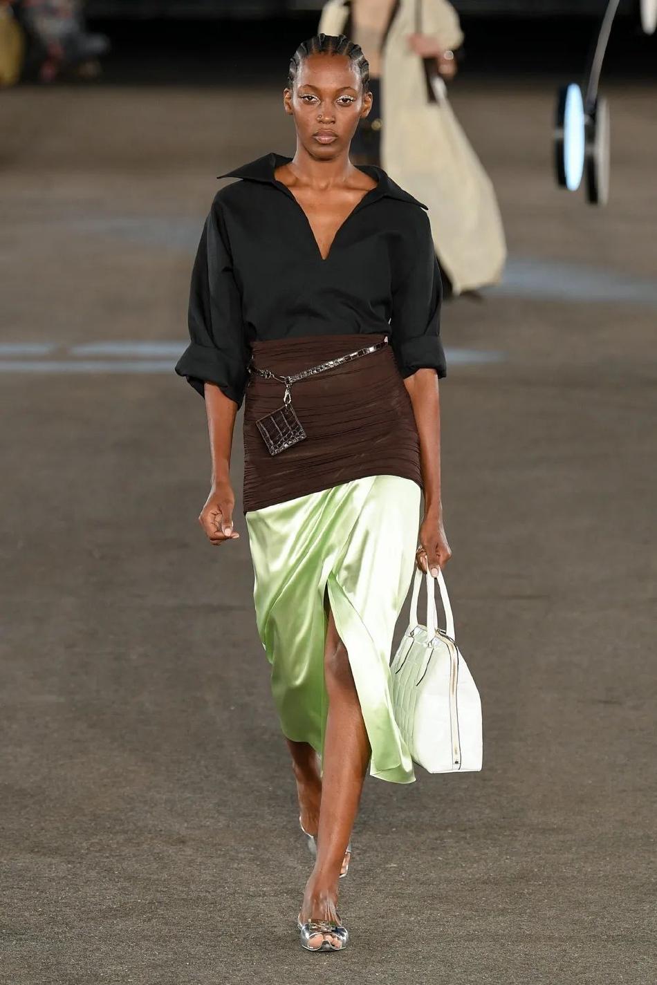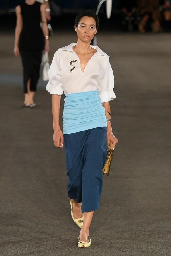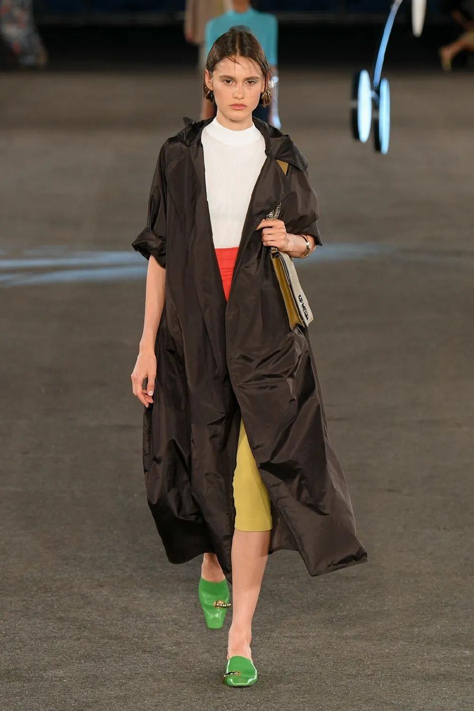 本季色彩的构筑遵循直觉,也略微奇特,将冷调中性色、光学白、冷感淡彩,以及高亮金属色结合。没有夺目的印花与图纹,凭借色彩凸显了材质、纹理和轮廓。