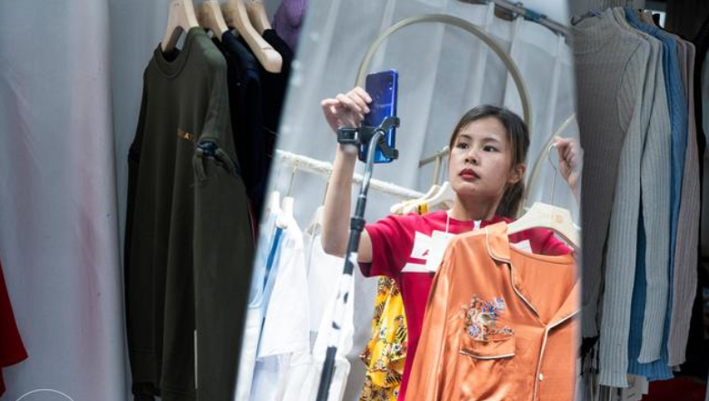 她负责做服装展示,而他则在镜头后控场,保障直播节奏,直至凌晨才下播。